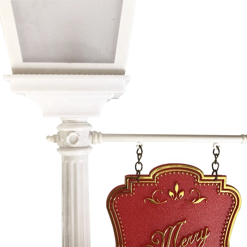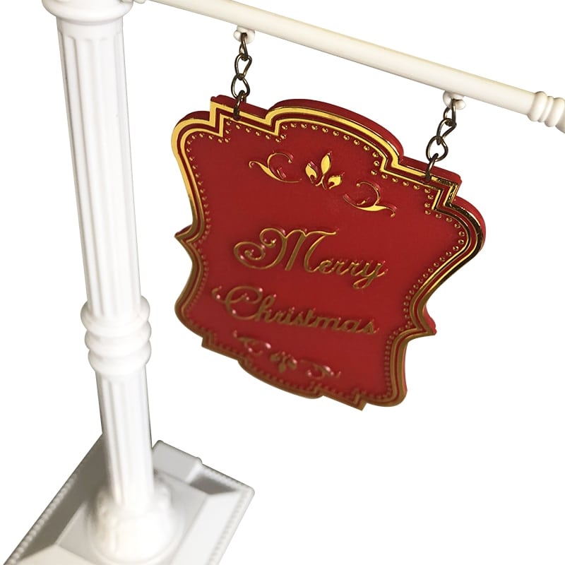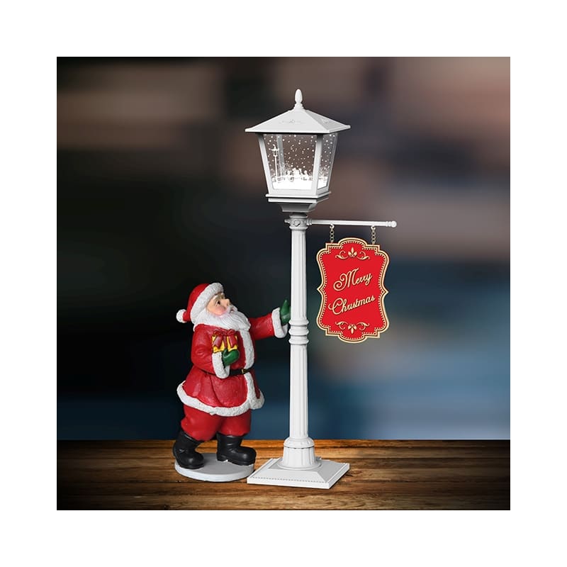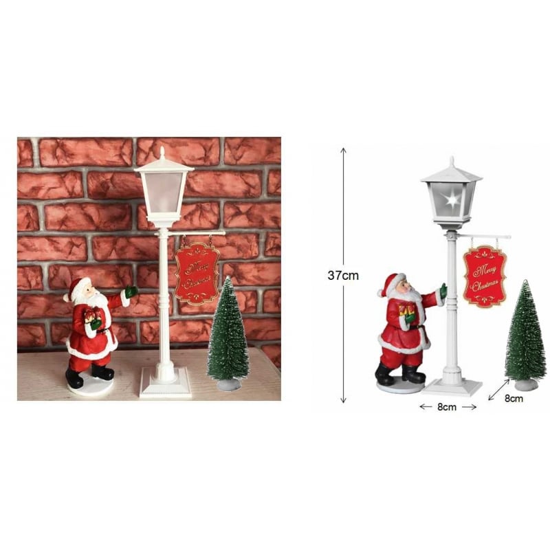 Easily install this set and enjoy the Christmas print. The streetlight offers continuous snowfall, LED lights and Christmas music.