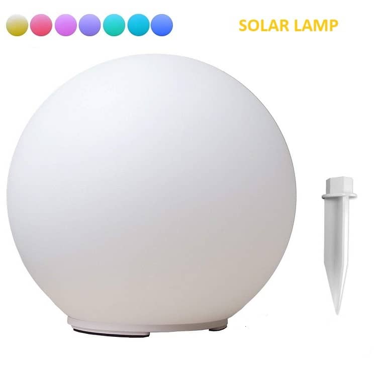 Solar LED Ball 30cm, 7 Color RGB Sphere Lamp, Includes Color Change Function + Anchor, USB Charging Cable.