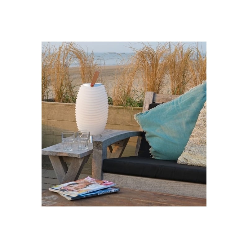 La cubitera champán led altavoz bluetooth, también sirve de lámpara, está fabricada en polietileno blanco, un material muy resistente y 100% reciclable.
