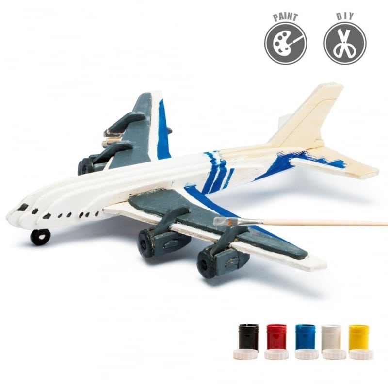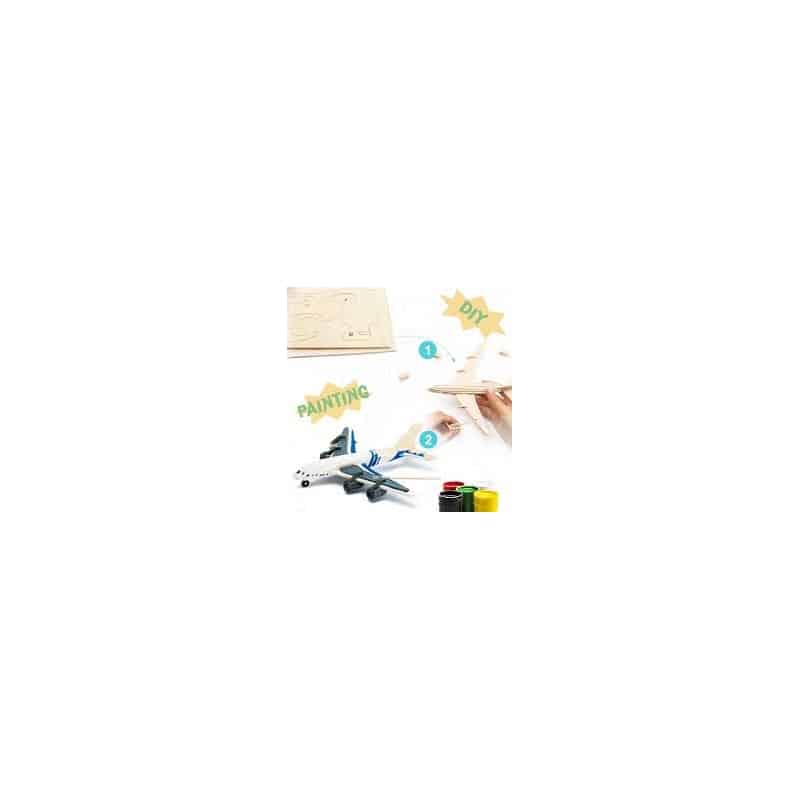 DIY Avión Pasajeros Puzzle 3D para Pintar de Madera